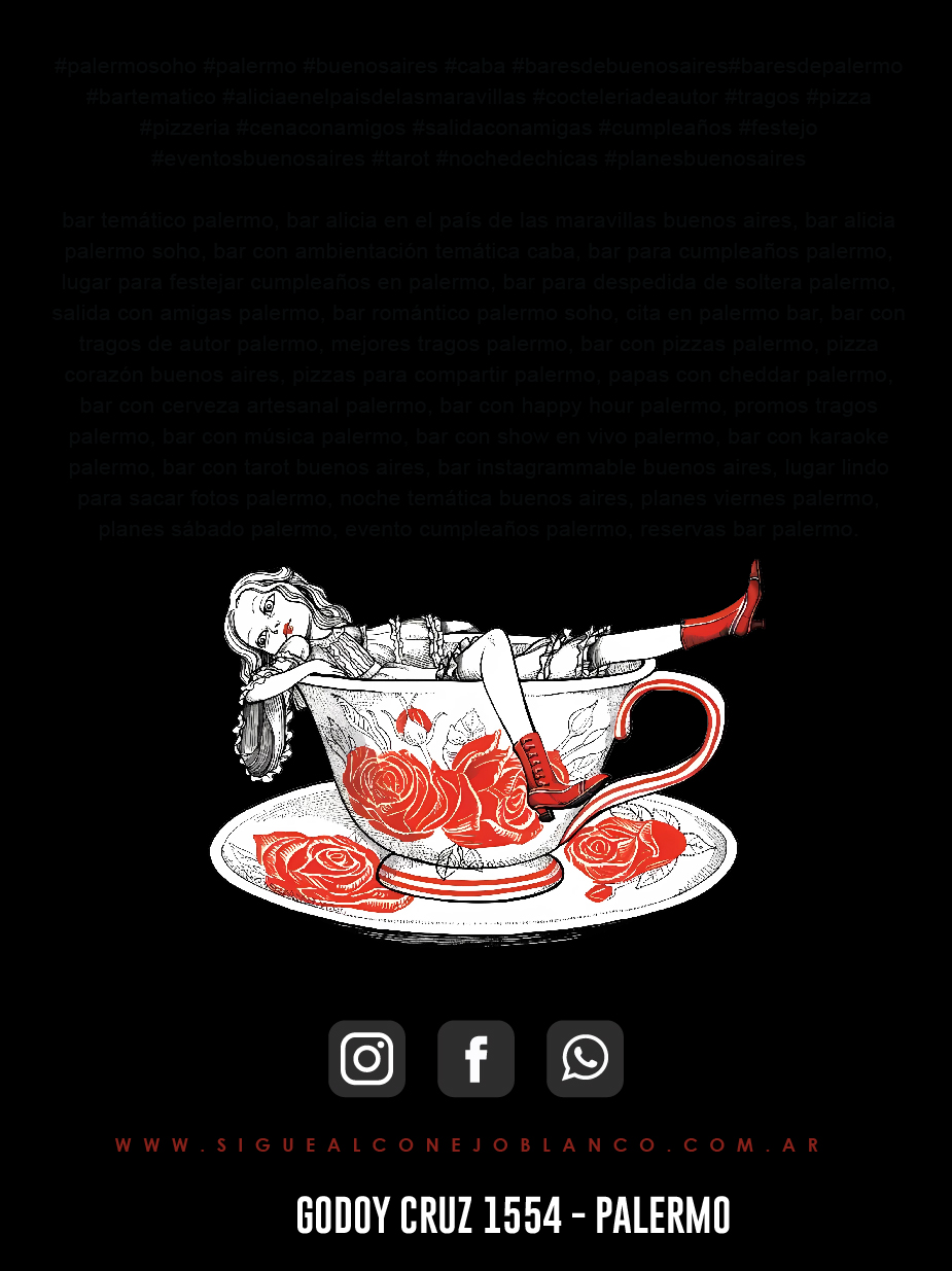 bar temático palermo, bar alicia en el país de las maravillas buenos aires, bar alicia palermo soho, bar con ambientación temática caba, bar para cumpleaños palermo, lugar para festejar cumpleaños en palermo, bar para despedida de soltera palermo, salida con amigas palermo, bar romántico palermo soho, cita en palermo bar, bar con tragos de autor palermo, mejores tragos palermo, bar con pizzas palermo, pizza corazón buenos aires, pizzas para compartir palermo, papas con cheddar palermo, bar con cerveza artesanal palermo, bar con happy hour palermo, promos tragos palermo, bar con música palermo, bar con show en vivo palermo, bar con karaoke palermo, bar con tarot buenos aires, bar instagrammable buenos aires, lugar lindo para sacar fotos palermo, noche temática buenos aires, planes viernes palermo, planes sábado palermo, evento cumpleaños palermo, reservas bar palermo. |